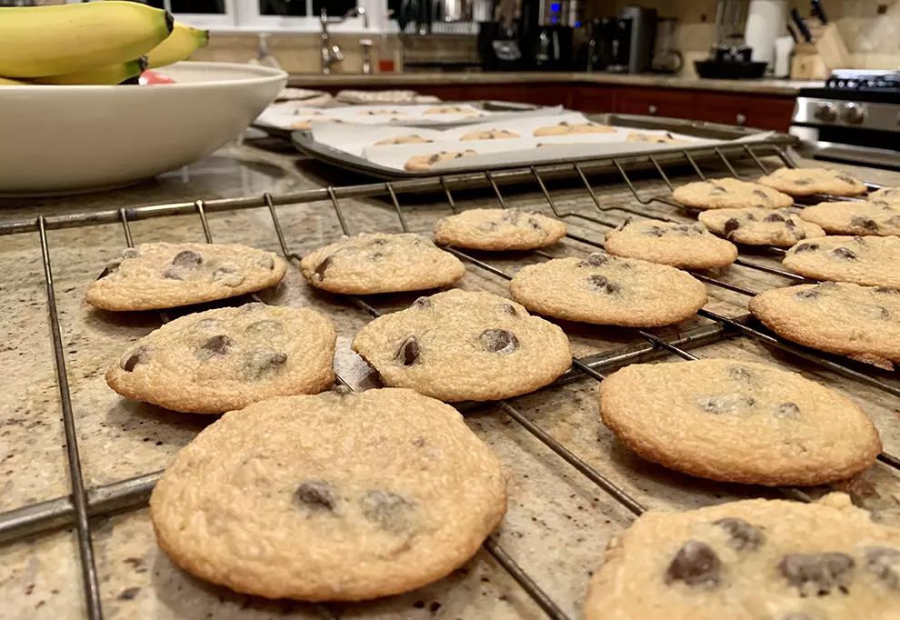 - Cook the cookies at 350 degrees Fahrenheit on a cookie pan, top shelf.