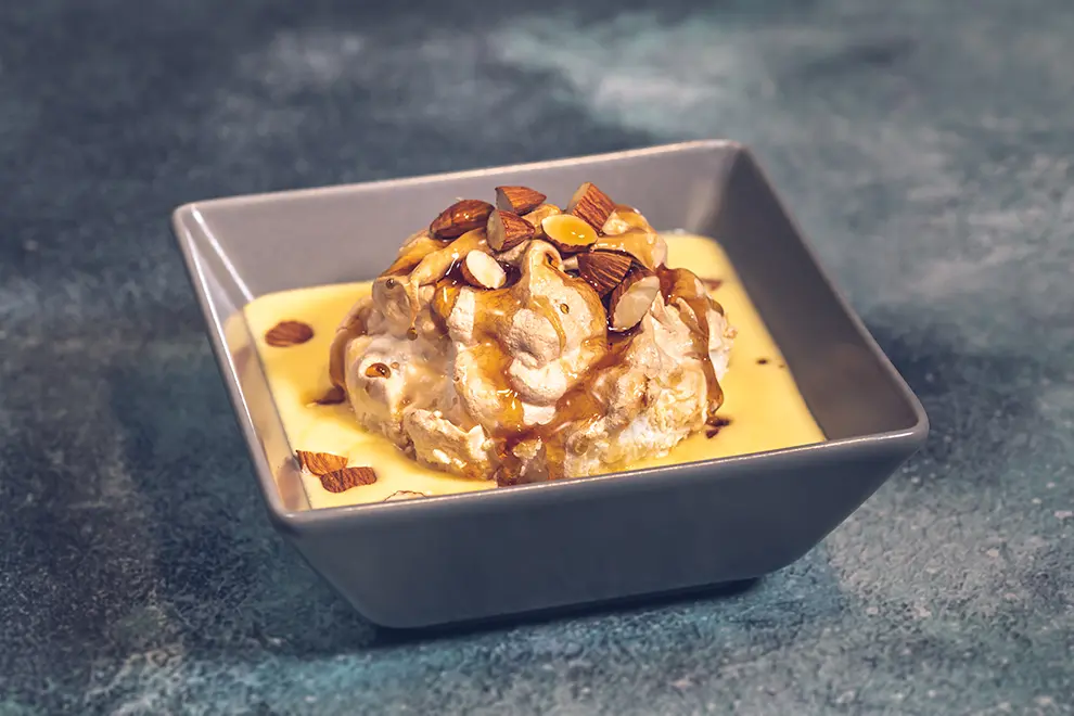- Custard can be flavored with coffee extract, with a zest of orange or grated lemon and infused in milk, or with 1 or 2 tablespoons of caramel poured into the boiling milk.