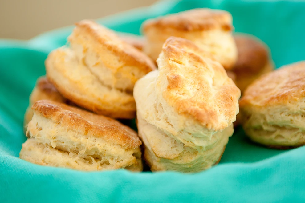 - Preheat oven to 425°F. Line a baking sheet with parchment paper; set aside. Stir together flour, sugar, kosher salt, baking powder, and baking soda in a large bowl. Using 2 forks or a pastry blender, cut in cold butter until most of the butter is pea-sized. If there are large chunks of butter, use your fingers to gently flatten. Add buttermilk, and stir until a shaggy dough forms and dough clumps together when squeezed in the palm of your hand.