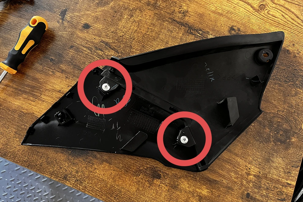 - Screw back the two top screws on the main cover to the bike (see step 12).