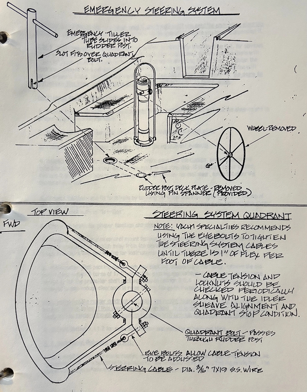 A suggestion: although you may never need it, don't wait until you need the emergency steering system to use it. Try it and become familiar with its operation before you have to depend on it.